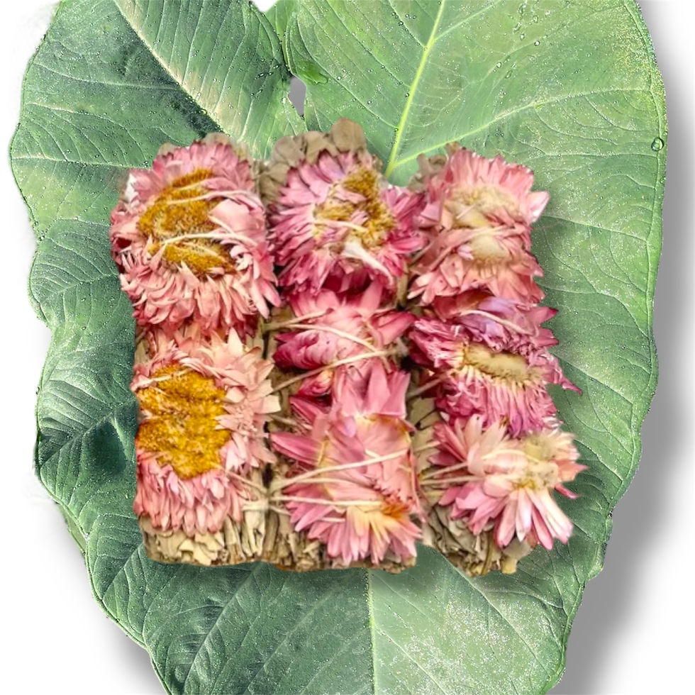 Chamomile, Eucalyptus, and Rosemary Wrapped 8" Sage Bundle